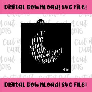 DIGITAL DOWNLOAD SVG File for 4" I Love You To The Moon And Back - Worded MoonStencil  - Regular price