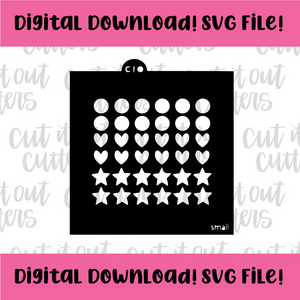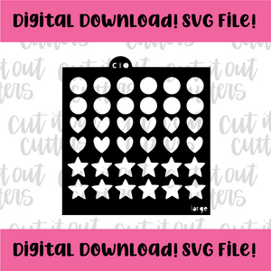 DIGITAL DOWNLOAD SVG File for SMALL Hearts, Circles, and Stars Stencil