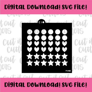 DIGITAL DOWNLOAD SVG File for MEDIUM Hearts, Circles, and Stars Stencil